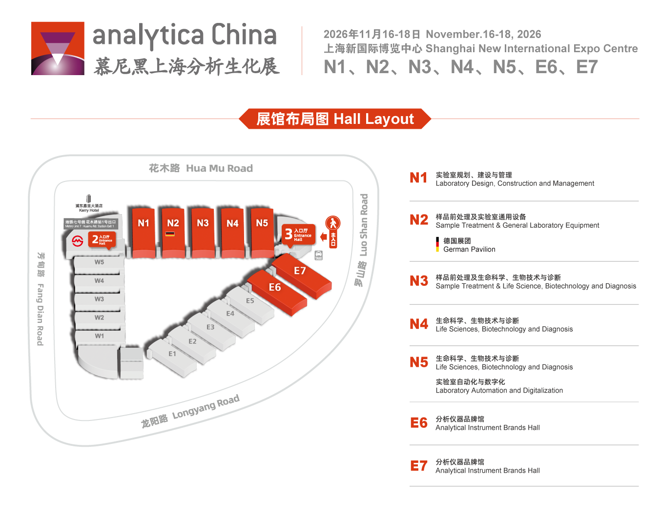根据展馆排序了解analytica china的参展商和品牌概况